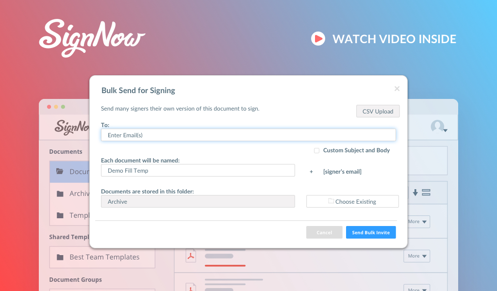 Customer Stories Beauty educators going online: Elegant management with digital workflow CLIENT PROFILE The founders of Breslin Products, LLC, a Las Vegas based company, are also the authors of the popular Million Dollar Stylist and Lace Wig Training Center project ... Productivity Invite multiple users to sign a document using signNow’s Bulk Invite feature Save time and streamline your document signing process by sending bulk invites. First of all, you should create an Excel spreadsheet containing the emails of the signature recipients. Name ... Productivity Are your employees productive or just busy? The task of being more effective at work can be misleading about what constitutes a productive work day. Busy people are obsessed with shoveling as many tasks into their ... Productivity 4 Awesome Benefits of Using Electronic Signature to Close Deals Faster The ability to reach out to a client or business partner whenever needed is crucial for success in the modern business world. Going digital makes it easy to get ... Productivity Create e-Sign Ready Business Proposal Templates with SignNow A precise and detailed proposal makes up the first phase of planning a business deal: a proposal should set the stage between a contractor and an owner, leaving room ... Productivity How to Create a Fillable Loan Agreement Template with SignNow Turn a static loan agreement into a smart fillable form, share it with your clients and business partners, collect client data and electronic signatures in a few clicks. Share ... Productivity How SignNow Promotes Data Security in the Workplace As more companies make the switch from manual, paper-based processes to digital workflows, data security remains the most important factor to a company’s success than ever before. From employee ... Productivity Why National Cyber Security Awareness Month is Important for Businesses Did you know that cyber crime damage costs will hit $1 trillion annually by 2021? Cyber theft is one of the leading crimes in the United States by far. ... Productivity How to Use SignNow’s Advanced Forms At SignNow, our advanced forms allow you, the sender, to authorize the first person who signs your document to send the document for another signature. It should be noted ... Productivity How to Use SignNow’s Bulk Send Feature Does your organization rely on high-volume communication between your employees and customers? SignNow’s bulk sending feature can significantly simplify your workflow and business processes, so that you can save ...